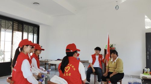 图1 实践团成员与普济村村民交流了解基本生活状况(赵煜杰 供图)