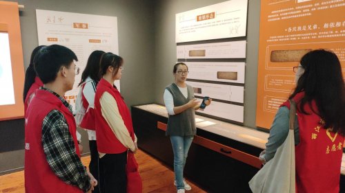 图3 实践团成员与东巴文化研究院白静老师交流了解东巴文化历史(赵煜杰 供图)