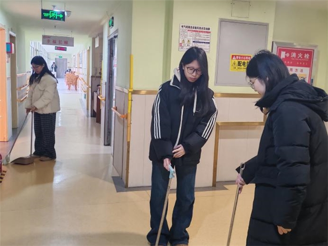活动当日,实践团成员们抵达祥爱缘清平苑分院后,便以饱满的热情投入到社会实践活动中。志愿者们拿起扫帚、拖把,对“幸福长廊”等老人日常活动的走廊进行了细致清扫,不放过任何一个卫生死角。