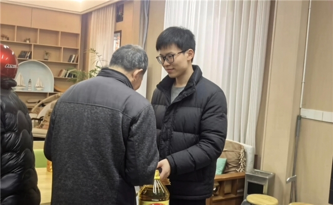 此外,志愿者们还深入居民家中,开展走访慰问活动。他们为社区老人送去米、油等生活物资,叮嘱老人注意饮食健康,贴心的举动让老人倍感温暖,现场氛围温馨热烈。