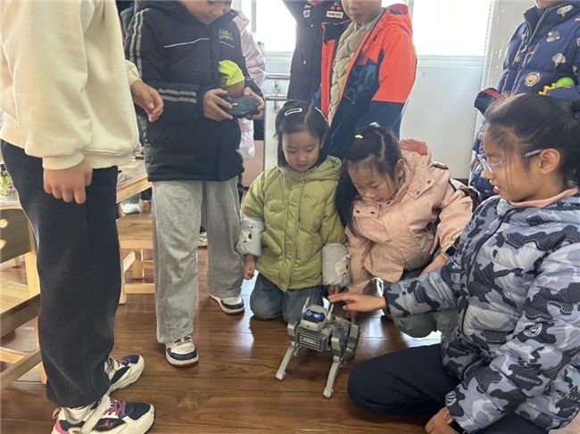 实践队成员与AI智能编程机器狗一同走进安康社区课堂,用科技元素点亮财经启蒙课/图:杨蕴涵