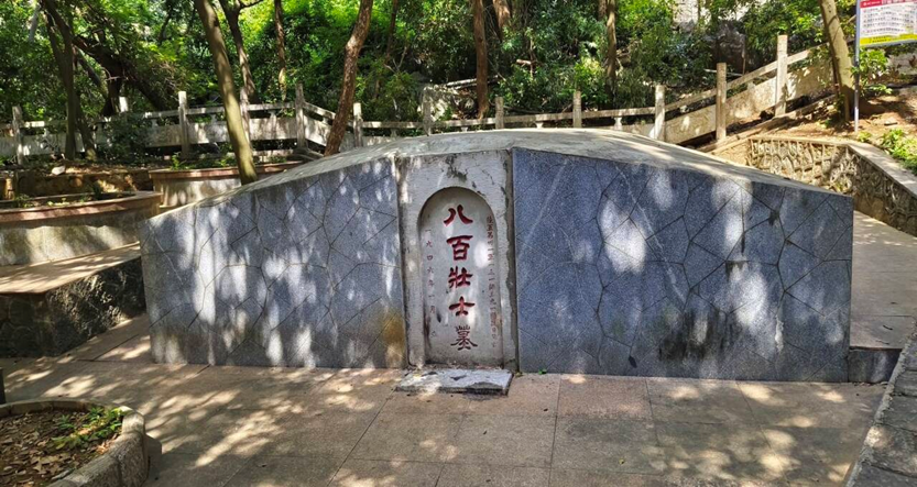 行走至山间,队员们首先来到八百壮士墓前,这座陵墓在阳光的照耀下庄严肃穆,成为镌刻在山水间的英雄印记。据史料记载,桂林保卫战期间,中国军队撤退至七星山后,数百名将士坚守山洞与日寇展开殊死抵抗,穷凶极恶的日寇竟使用毒气弹战术,致使山洞中约八百名壮士壮烈牺牲,用生命诠释了中华儿女的民族气节。队员们驻足墓前,凝神伫立,认真聆听这段悲壮的历史,深切感悟英烈们视死如归的抗争精神。