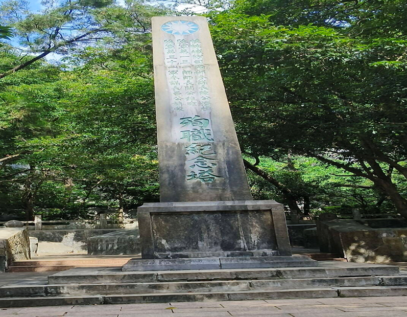 在八百壮士墓旁,桂林抗敌忠骸纪念碑巍然矗立,碑身之上,清晰记载着阚维雍、吕旃蒙、陈济恒三位将军与八百烈士在桂林保卫战中的英勇事迹。碑文详细还原了桂林保卫战的壮烈经过:彼时日军兵分多路进犯桂林,守军将士遵照战略部署,与日寇展开十三昼夜的殊死搏斗,士卒杀伤过当,敌军死亡盈万,终因众寡悬殊、后援无继,普陀山、月牙山等阵地相继失陷,八百余名将士被围于七里岩,遭日寇毒气袭击壮烈殉国,三位将军亦血战到底、以身殉国。队员们逐字研读碑文,触摸历史的温度,那段山河破碎下的浴血抗争,让每一位队员都深受震撼,内心的爱国之情与崇敬之意愈发浓烈。