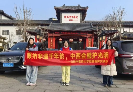 在为期一周的时间里,实践队足迹遍布巨野一中、平度一中、寿光一中三所重点中学,巨野县嘉园社区、寿光市圣城街道卫生院及社区、古城街道北洛农村社区卫生室等基层卫生站点,并走进中华老字号宏济堂制药集团探寻中医药文化的根脉。队员们结合专业所长,并在中医药服务中突出“中医护眼”特色,通过贴敷明目贴、教学眼保健操等形式,将健康的种子播撒在齐鲁大地的基层一线。