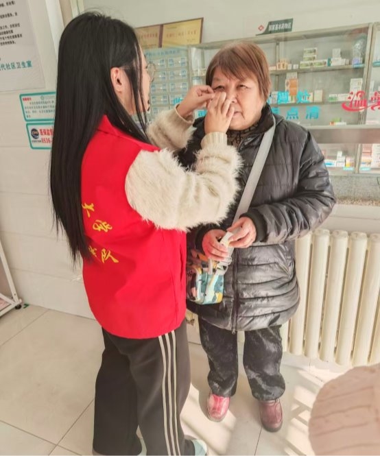 在寿光市圣城街道卫生院,队员们还与基层医务工作者进行了交流,将大学课堂所学的眼科中医适宜技术与基层实践相结合,建立了临时的社区健康服务联系点,为后续常态化的健康对接打下了基础。