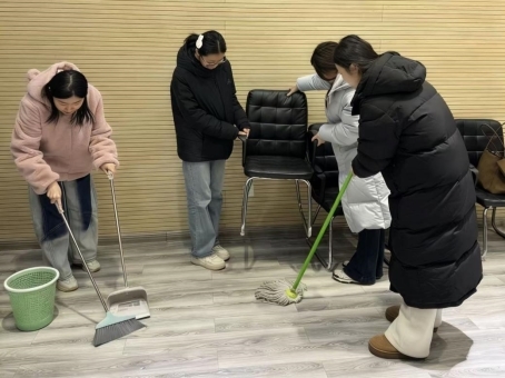 图为实践团成员进行后续卫生清扫工作