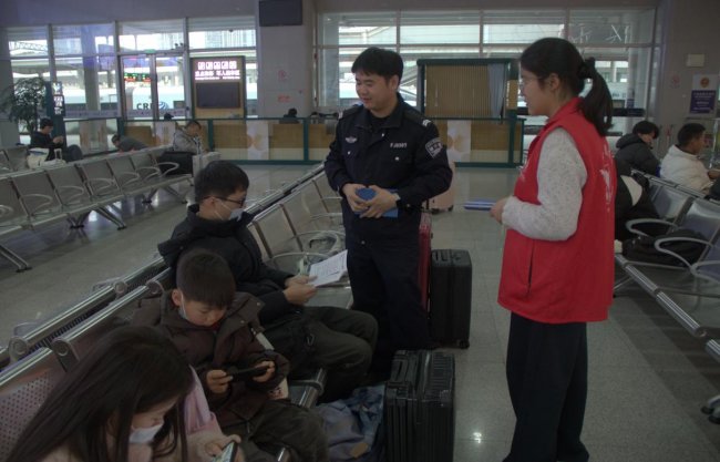 为切实保障2026年春运期间旅客出行安全、有序、温馨,大力弘扬“奉献、友爱、互助、进步”的志愿精神,充分展现新时代大学生的责任与担当,近日,淮北理工学院“暖冬行志愿者”团队(邱可、赵功珣、单吉祥、袁锐淋、吕彦洁、张君玮、郑言、刘天赐)前往淮北站与淮北北站开展春运志愿服务,并联合淮北市公安局同步开展反电信网络诈骗宣传活动,以青春服务温暖归途,以反诈宣传守护平安,为春运保驾护航。
