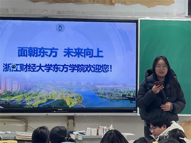为助力高三学子科学备考、明确升学方向,传承感恩回馈精神,近日,浙江财经大学东方学院6名学子组成寒假实践宣讲团,在指导老师带领下,前往湖州市吴兴高级中学开展主题宣讲实践活动。团队以经验分享、互动交流、问卷调研等形式,为母校学子送上实用干货与暖心祝福,活动氛围热烈、反响良好。