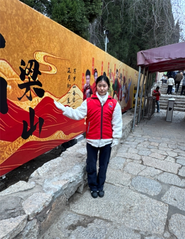 在水泊梁山风景区志愿服务期间,我以“志愿红”守护水浒文化景区,参与咨询引导、秩序维护、环境保洁、文明宣传与应急帮扶等工作,用行动践行奉献精神。岗前培训让我熟悉景区概况、水浒文化、服务礼仪安全须知,为规范服务打下基础。实践中,我在入口、售票处、观景台等点位值守,为游客提供路线指引、票务解答、景点讲解,发放景区导览图与文明旅游手册,帮助游客规划游览行程。客流高峰时,协助维持排队秩序,疏导人流, 提醒游客看护好老人小孩与随身物品保障游人