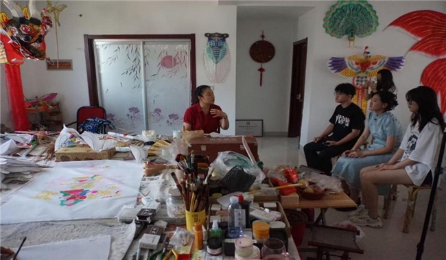 实践首站,团队成员拜访了国家级非物质文化遗产潍坊风筝代表性传承人,“风筝王”杨同科的孙女杨红卫老师。通过访谈,团队成员进一步了解了风筝技艺的历史传承、制作过程以及潍坊风筝的独特之处。此外,在访谈中杨老师还表达了对传统文化与现代民俗结合的看法,她认为风筝等传统文化应该与现代文明融合,与现代重要的ip,如饮食、运动以及游戏等融合,才会让越来越多的年轻人了解并热爱传统文化,她着重强调创新是传统技艺发展的关键。