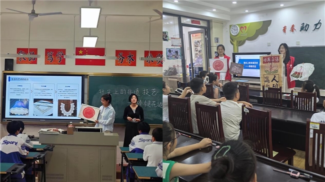▲图为团队成员进入济南中学、桂林路社区小草学堂进行非遗宣讲